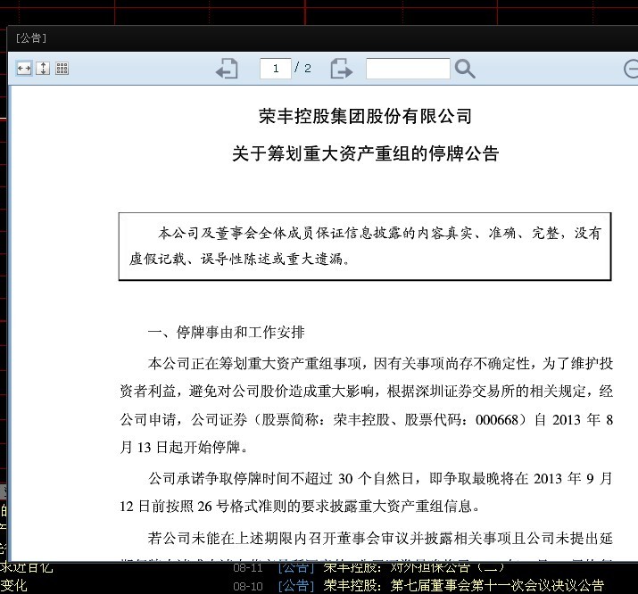相信重组方实力一定非同一般。因为武汉市有很多全国有名的大公司。而荣丰净资产高。是超有价值的壳。