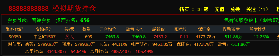 今天中证IC1507走了个小V,本来以为今天要爆仓了, 这下逆转了,你还敢玩期货吗?