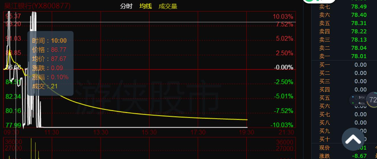今天画的线太有个性了!A股没有,B股也没有,H股也没有,前无古人,后无来者!独在游侠吴江银行里出现!给你点赞!