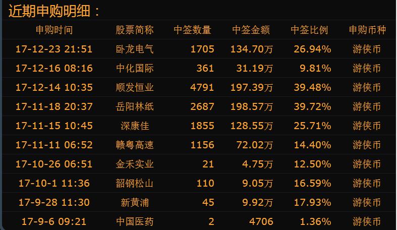 17-10-26 12:14 金禾实业 361 81.59万 16.19% 游侠币