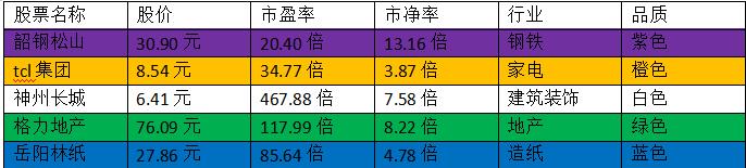 分以下=橙色橙色=非常建议投资紫色=投资价值较高蓝色=一般绿色=较差白色=建议远离