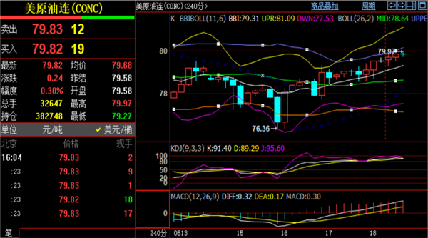(美原油(美原油04,62.75,-0.87%,模拟交易)03,62.93,-0.90%,模拟交易)的波动几乎没有受到黄金的影响,稳定的维持在79-80区间内盘整。技术面上来看日线暂定80和今日低点79.2区间内运行,日内先看这个区间的破位情况再定后续涨跌方向。今日阻力关注1小时布林带上轨和日线布林带中轨重合点80关口,4小时布林带上轨粘合4小时MA120均线承压80.3一线,向上破位则关注日线MA60和MA30均线粘合压制点81.2位置,周线MA10均线压制点在81.5一线。