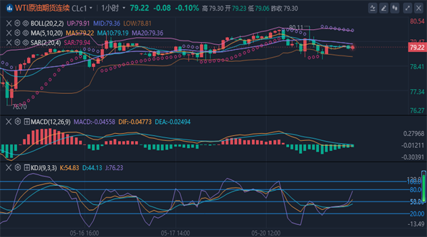 美原油窄幅震荡,7月合约目前交投于79.23美元/桶附近。