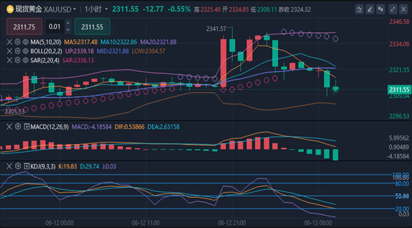 【黄金消息面分析】:周四(6月13日)亚洲时段,现货黄金美黄金04,4988.6,3.97%模拟交易震荡微跌,目前交投于2321.63美元/盎司附近。周三金价冲高受阻,早上时候因美国5月CPI数据显示美国通胀增速放缓,金价沪金2604,1114.50,2.24%模拟交易一度飙升近30美元至2341.51美元/盎司,但美联储利率决议维持利率不变,暗示今年将仅降息一次,美联储主席鲍威尔的讲话也不如预期的鸽派,金价回吐了大部分涨幅,收报2324.71美元/盎司,涨幅约0.35%。