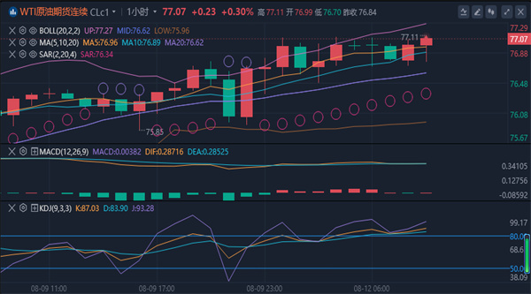 【原油消息面分析】:周一(8月12日)亚市早盘,国际油价守在逾一周高位附近,美原油目前交投于76.83美元/桶附近。上周五油价美无铅汽油04,2.1654,0.97%模拟交易收高至一周高位,周线涨幅超过3.5%,积极的经济数据和美联储决策者可能最早于9月降息的信号缓解了需求担忧。