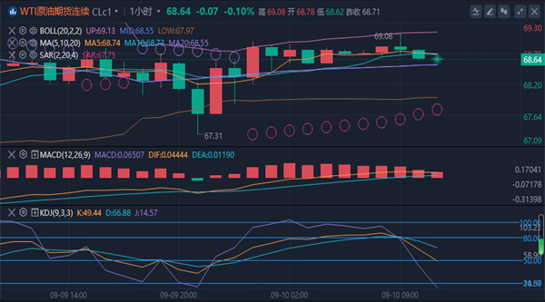 均线形成压制,本周操作71.40下方反弹继续择机空即可。综合来看,原油今日短期操作思路上万乾建议以反弹高空为主,回踩低多为辅,上方短期关注70.0-70.5一线阻力,下方短期关注67.8-67.3一线支撑。
