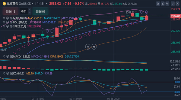 【黄金技术面分析】:技术面上来看上周五日线收了一根中阳柱,布林带即将开口,KDJ指标金叉放量,目前来看大趋势偏上,中线阶段性上行。价格如期震荡上行,