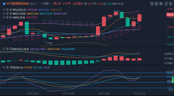 【原油消息面分析】:周一(10月7日)欧盘时段,原油美原油美原油04,63.30,0.67%模拟交易03,63.50,0.60%,模拟交易期货价格大幅上涨。地缘政治方面的担忧推动油价上涨。中东不断升级的冲突可能会扰乱石油出口,推动原油价美无铅汽油04,2.1654,0.97%模拟交易格接近每桶80美元的关口。分析人士警告说,美国和伊朗介入中东可能会加剧全球石油供应风险。