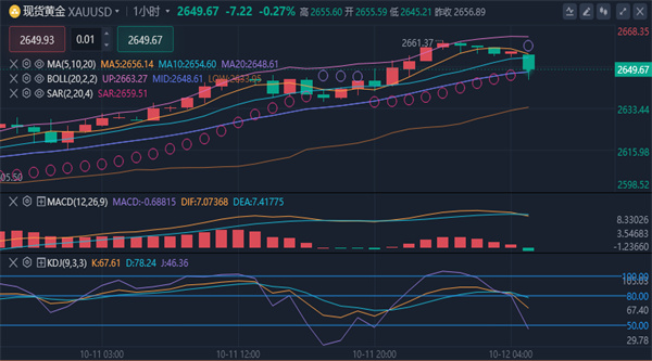 【黄金消息面分析】:随着12月黄金美黄金04,4988.6,3.97%模拟交易期货10月11日收报2674.90美元,比前一周的收盘价上涨不到10美元,黄金市场面临一些卖压,因为市场继续调整对美联储激进宽松政策的预期。由于美元自本月初以来上涨2%,黄金的整固也在此背景下进行,美元收于103点的阻力位下方。