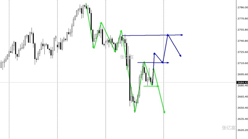(沪金2604,1114.50,2.24%,模拟交易)无力上破该水平,大概率出现空头延续,反之将出现多头反弹去考验2747一带。综合以上分析,张亿富认为:黄金见顶概率较大,下周一操作上考虑反弹做空为主,低多为辅,上方关注2704-2710美元阻力,下方关注2680-2650美元支撑。