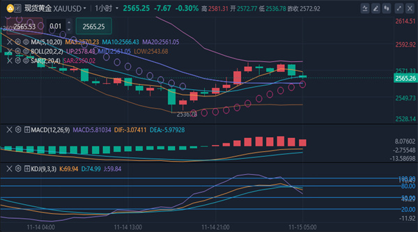 均线还是继续空头向下空头发散,黄金反弹力度有限,