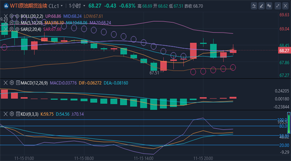 (美原油(美原油04,63.30,0.67%,模拟交易)03,63.50,0.60%,模拟交易)技术面分析】:原油市场昨日开盘在68.11美元/桶,后行情回踩67.93美元/桶,后行情直接拉升,日线最高触及到了68.45美元/桶,后行情冲高回落,日线最终收线在了68.66美元/桶,后行情以一根上影线很长的中阳线收线,油价