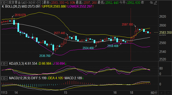 黄金给出的波段多单方向和点位基本上变差不大,上周在低位2541-40区域给出的多单,今天的高点触及2597一线。而