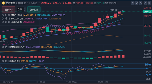 (美黄金04,5055.7,1.35%,模拟交易)交投于2688