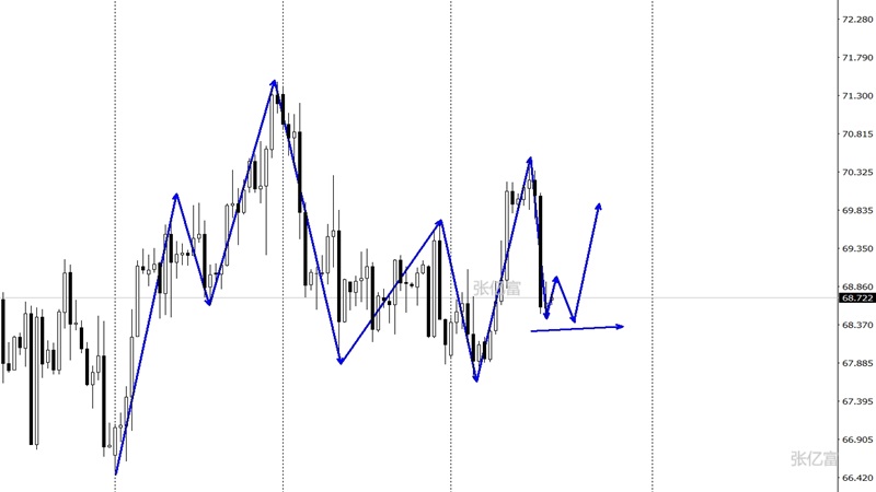 短线客观趋势方向进入转换节奏。每一次的反复都形成一波区间的波动范围。预计原油短线走势在区间内震荡运行,区间范围在70.60-67.80。综合以上分析,张亿富认为:原油宽幅震荡中,暂时在67.9一带形成支撑,有望向上考验阻力,今日操作上考虑高空为主,低多为辅,上方关注69.5-70.5美元阻力,下方关注68.0-67.5美元支撑。今日原油实盘在68.6-68.3区域布局多单,获利在69.1附近。