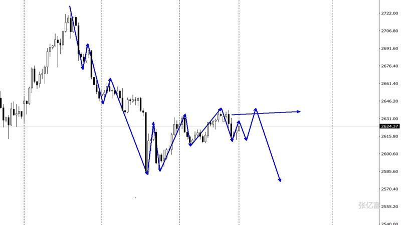 依旧处于区间运行中。四小时级别上看,布林带处于走平中,黄金运行在中下轨徘徊中,黄金在2582美元企稳后,黄金向上运行了一个震荡三段势上涨走势,在经过了2581上涨2626,2586上涨2633,2606上涨2639之后,黄金上涨出现了衰弱迹象,再次企稳与2611一带,今日重点在于黄金是否能够突破前高。综合以上分析,张亿富总结:黄金处于窄幅震荡中,今日操作上考虑高空低多策略,上方关注2633-2645美元阻力,下方关注2615-2600美元支撑。