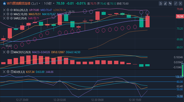 美原油亚盘时段小幅上涨,交投于70.68美元/桶附近,基本面上