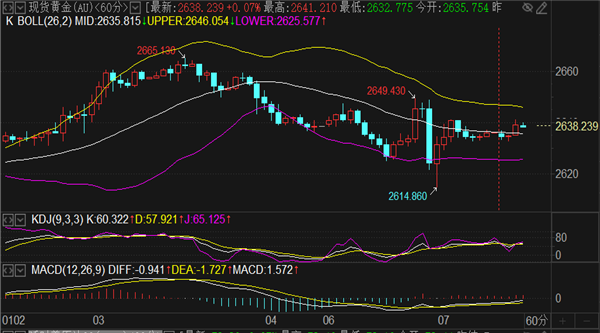 黄金实时现报价2639一线,亚盘先看1小时上下轨区间2644-2625,向上破位看2649-2652压力位,跌破2628-2624支撑范围才能继续下看。早间计划反弹触及2644附近正常做空。