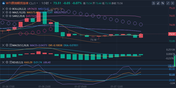 美原油亚盘时段小幅下跌,交投于73.43美元/桶附近,技术面上美原油