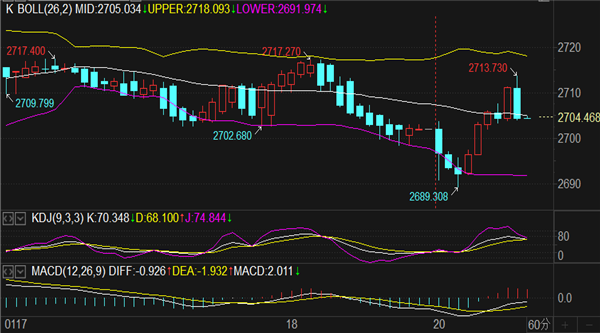 2、低位2690做多,2685补仓多单,破2680止损,目标2700-2715,破位持有看2626;