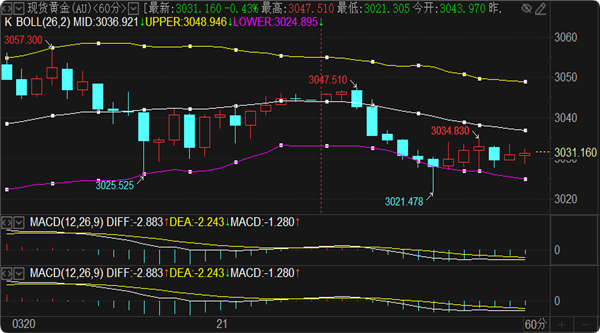 细分下来看,欧盘黄金走势的整理区间先看30分钟图形周期布林带上轨3038和布林带下轨3024运行情况,这样来看支撑和阻力就会清晰许多,对于晚间阻力先看3038一线,其次关注3047日内高点,4小时布林带上轨粘合SAR指标承压3053位置,向上偏差看月线上轨3060-65压制区域。支撑方面留意日内低点3021和4小时下轨3018形成的支撑范围,向下破位直接看前期高点转支撑位3004和日线MA10