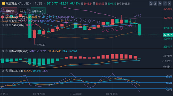 金价格在经历了急剧下跌后形成了一个明显的双底形态,最低点触及2999.40位置。目前价格已经反弹至3030水平,成功站上了关键的斐波那契0.382回调位3010.87,这是一个积极信号。MACD指标显示,尽管DIFF值为-2.51,但柱状图正在收敛,暗示下行动能正在减弱。RSI指标处于52.73左右的中性区域,没有显示出严重的超买或超卖状态,为价格提供了向上发展的空间。黄金