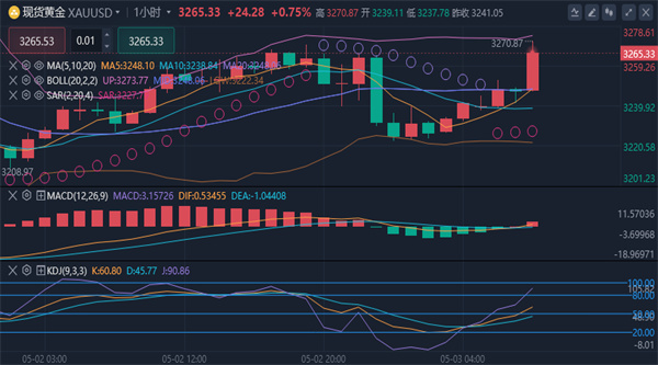 (美黄金02,5530.0,2.20%,模拟交易)从4小时来看,行情低点在不断抬升,高点也随之刷新,短期内渣多仍是主流,附图macd技术指标开始出现金叉向上,上方压制位关注3273-3278附近,