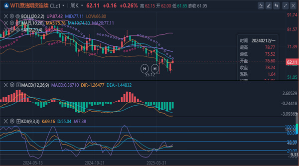 (美原油(美原油06,91.17,-0.43%,模拟交易)05,94.80,-0.52%,模拟交易)上涨93美分,涨幅1.5%,收于每桶61.95美元,双双创下自4月28日以来的最高收盘水平。但冲高之后周二再次回落,目前依然处于区间震荡之中。