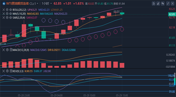 美原油(WTI)日线图来看,当前价格已突破短期震荡区间上沿,并站稳在60日均线之上,显示出强势反弹迹象。MACD指标形成金叉,红柱持续放大,表明多头动能逐步增强。若后续能够有效突破63美元关口,将有望上探66美元附近的前期高点支撑位;下方则以60美元作为关键支撑位,一旦失守,短期上涨趋势可能遭遇考验。整体来看,