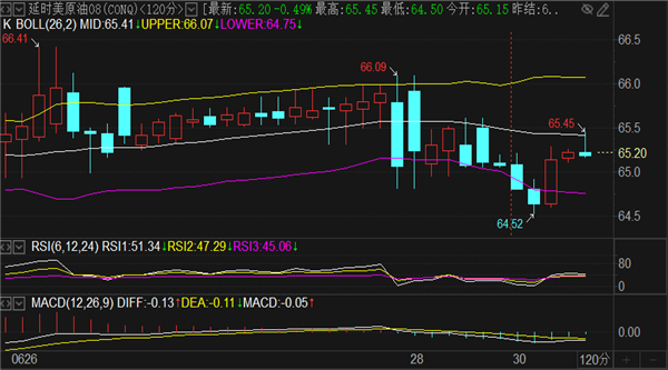 原油实时行情分析:原油美原油美原油04,61.00,2.56%模拟交易03,61.28,2.70%,模拟交易)日线图形周期上自动平行通道下轨和日线趋势线压力点粘合承压65.9一线,刘铭诚预计这里将决定今日原油价格强弱。很长一段时间没有好好做油,今天过后会全面回归工作。盘面上来看4小时布林带上轨位于66.1,下轨位于64.5,连续4天的行情走势基本上都在这个区间内盘整,下方的偏差支撑看前低63.9,上方的偏差阻力看上周反弹发哦点66.4一线,既然没有再次出现破位行情,那短线就围绕此区间高抛低吸建仓思路对待即可。