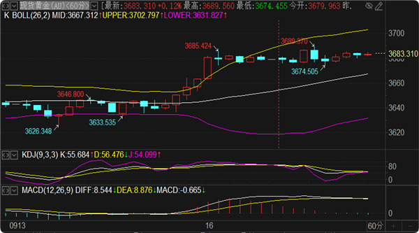 黄金策略:实时现报价3684一线。