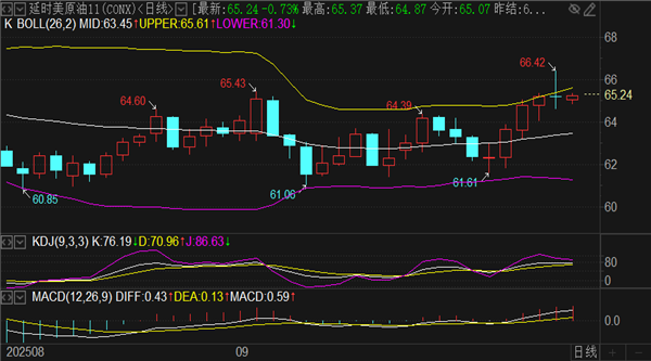 (美原油(美原油04,64.61,-0.19%,模拟交易)03,64.81,-0.12%,模拟交易)震荡区间明显上移,暂定67.8-63.5区间整理,周一的回撤力度很小,下方的支撑分别关注64.7-64.2和63.5,阻力关注66-66.3区域压制点,向上破位依次参考67和67.8两个节点。方向判断看涨没错,但力度涨幅没有黄金来的刺激,直白说今年的重心不在原油上面,所以分析思路特别简单,仅供各位道友做参考。今日操作上刘铭诚建议以周线MA30