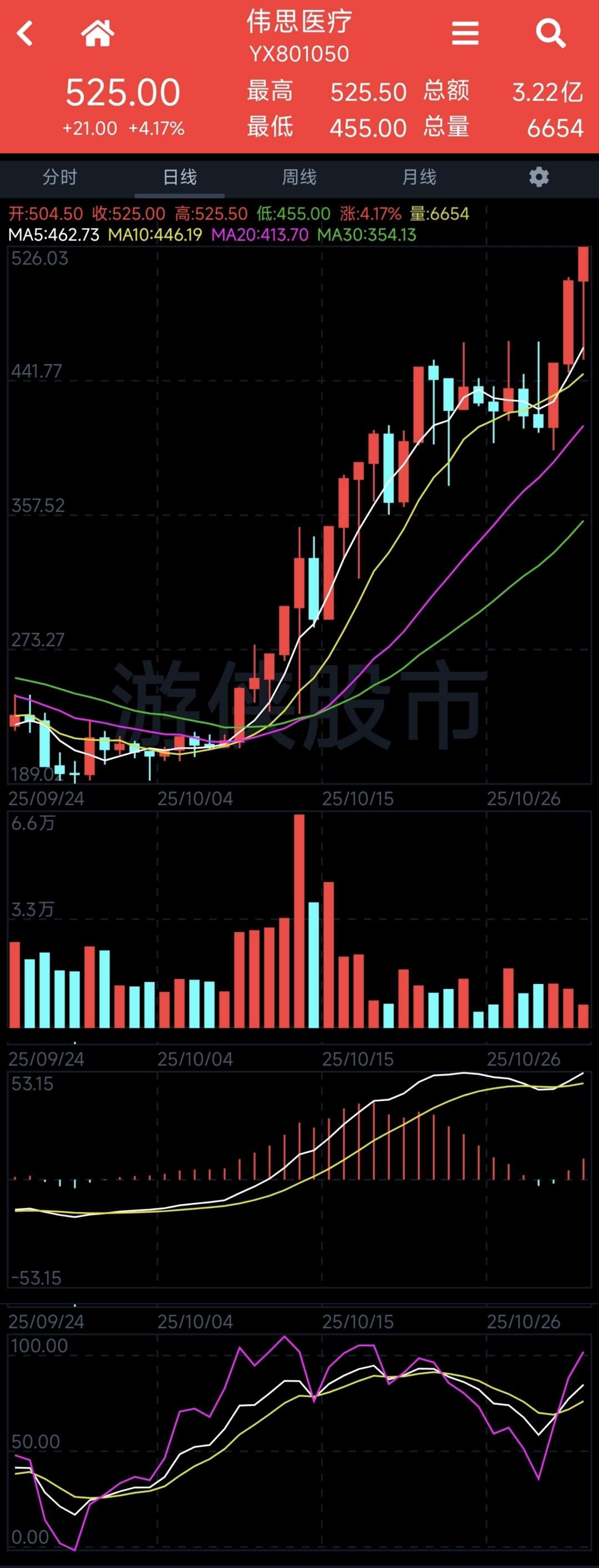 10月9号行情启动,至今经过20多天的上涨,伟思医疗