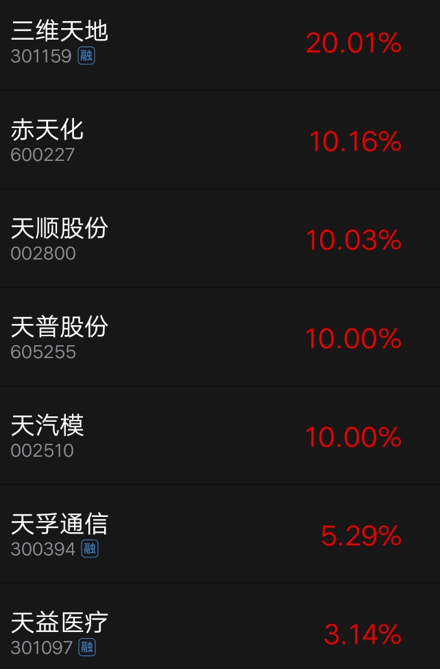 還是天字票牛逼,截止10:50已經有5只票漲停!