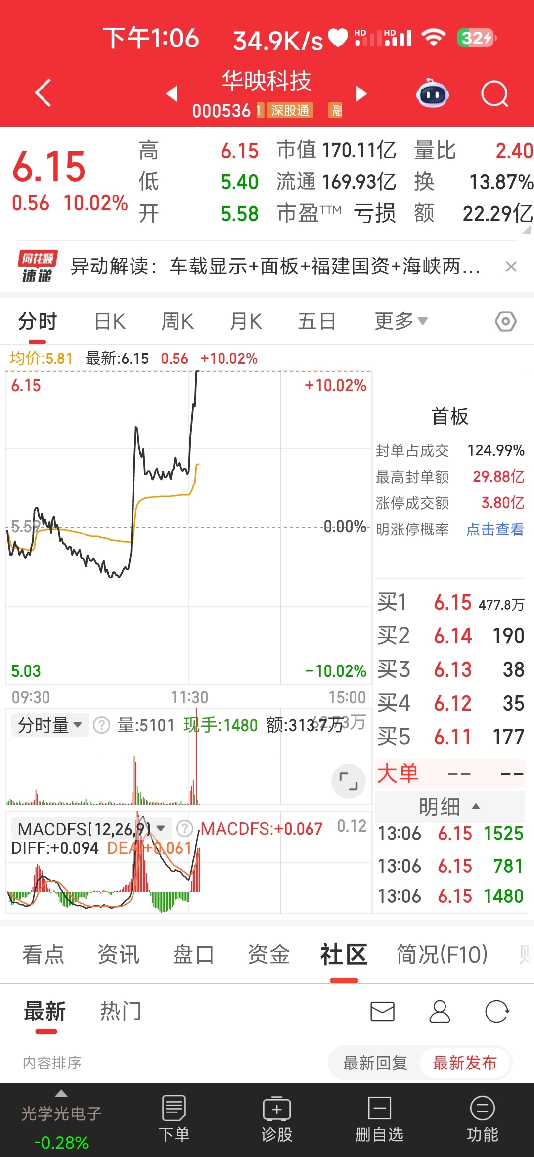 中午凤凰三回收失败变成火鸡三,板上果断卖出,买入华映科技,连吃两板。