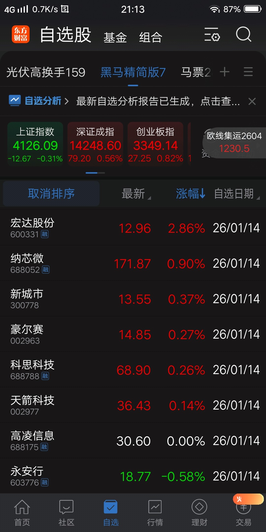 1月15日精简公式自动选出14只股票