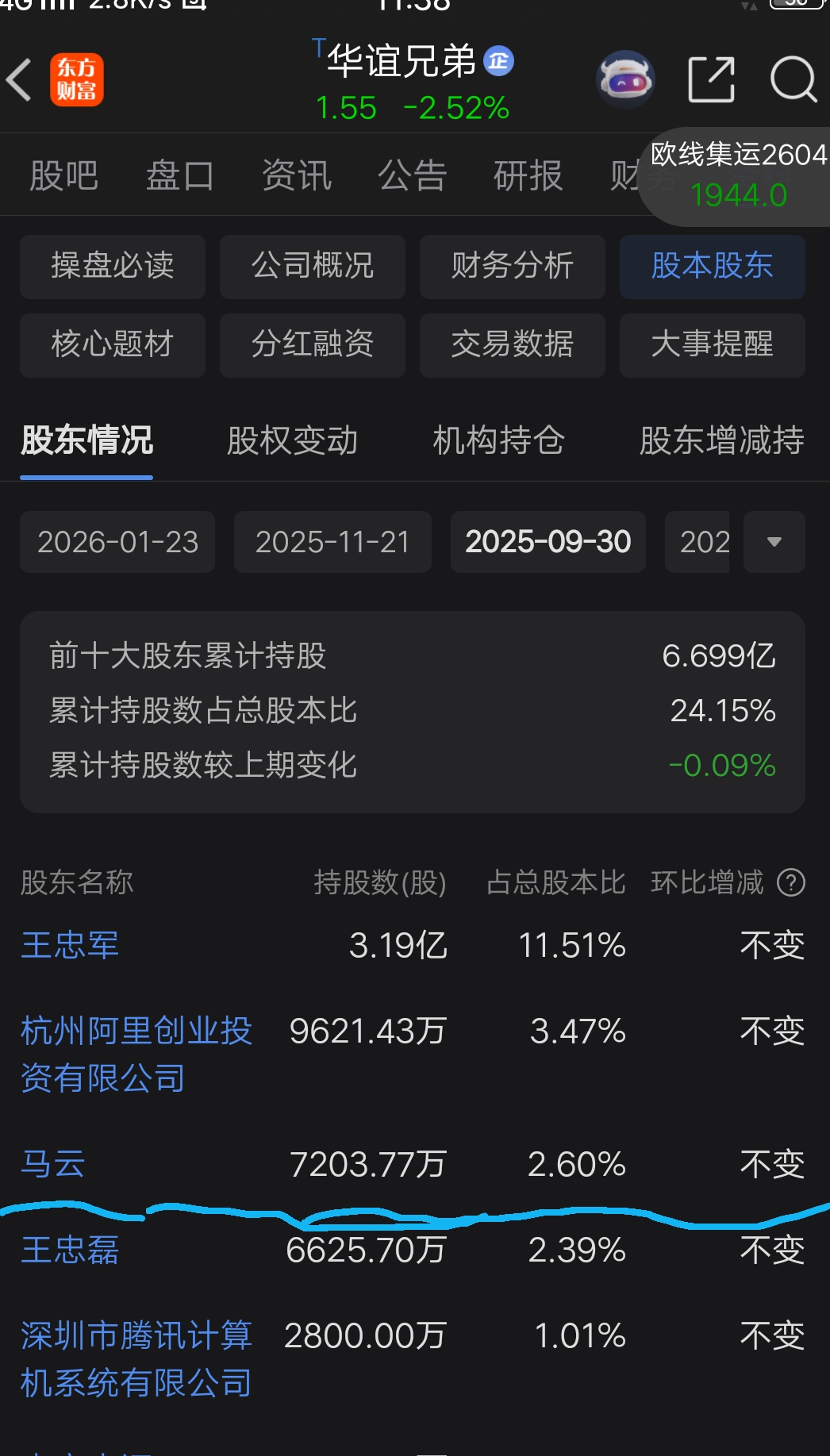 无意中发现十大股东竟然有马云,是同名同姓还是马云真身?点开资料还持有了以岭药业,不过在减仓