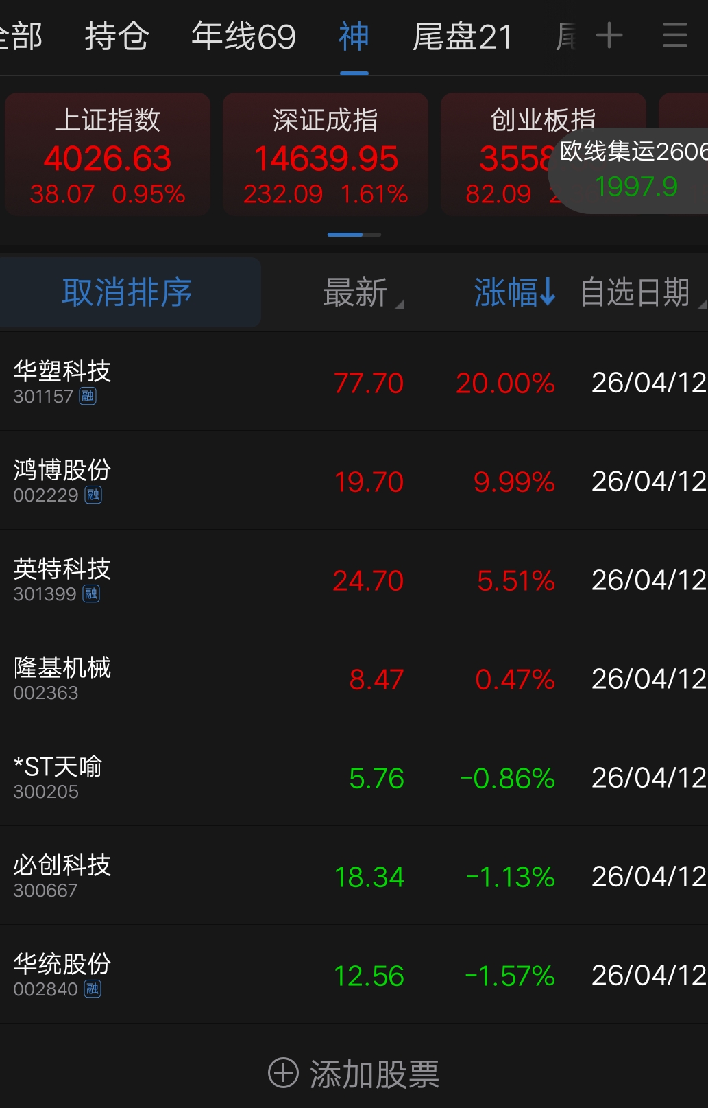 2只涨停,从来没有一天两个涨停过哈哈!4红三绿,4.63%平均收益不高,但没做