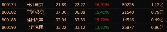 800182宁波银行、800190上汽集团、800174长江电力